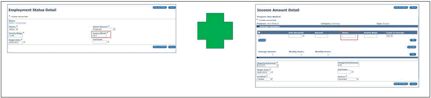 When entering hours on the Income Amount Detail page, it’s important to note that KEES will only accept whole numbers. This will change after the July release, but until then, staff will need to enter whole numbers only. Here are a couple of examples: