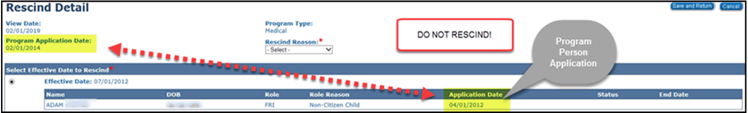 Please check ALL rescind actions to confirm that the Program Person Application does not come before the Program Application. This can be verified on the Rescind Detail page. If you run into the scenario where the Program Person Application is before the Program Application: